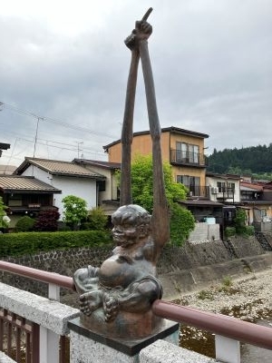 歩き始めて最初に、市内を南北に流れる宮川にかかる鍛冶橋のところで出会ったのが、この人?たち(笑)