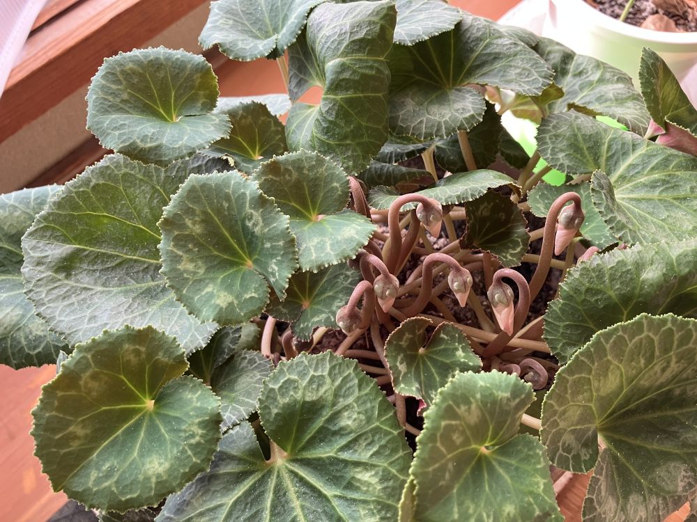 7シーズン目を迎えるシクラメンは蕾がいくつか立ち上がり始めたけれど、未だ開花に至らず。