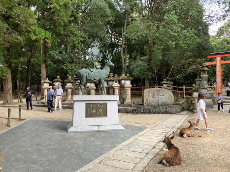 東大寺前でバスを降りた時からそうですが、とにかく鹿だらけ。そして鹿のフンだらけ。