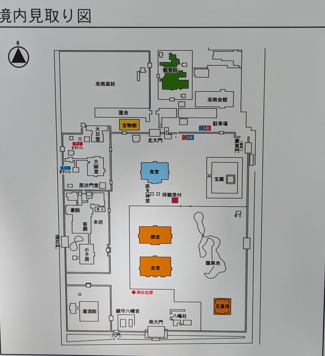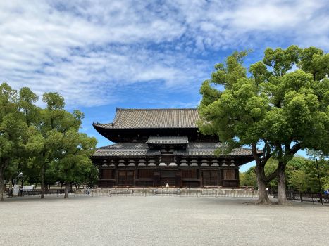 東金堂の隣に見えるはずの五重塔は保存修理工事中でした。ちょっと写っています。